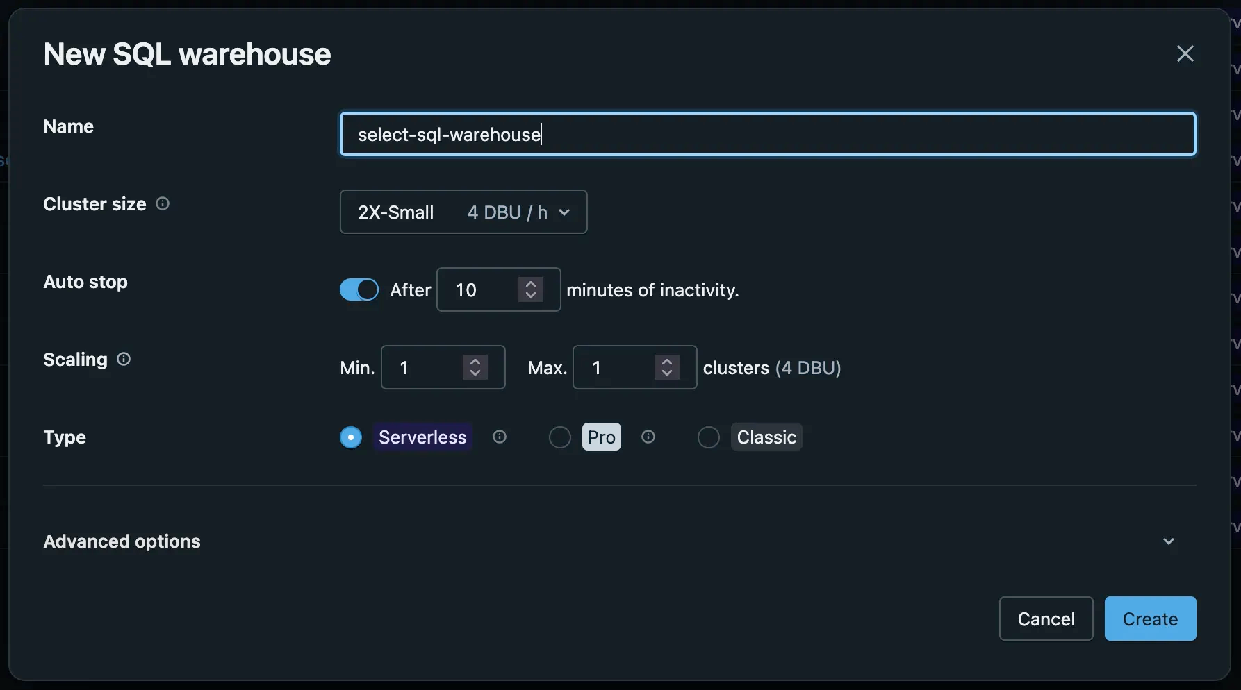 select-sql-warehouse) - Cluster size: 2X-Small